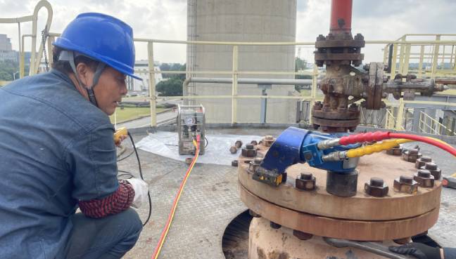 內(nèi)六角高強螺栓的預(yù)緊與普通六角螺栓的預(yù)緊原理是一樣的,只是設(shè)計有些微不同。內(nèi)六角高強螺栓有相應(yīng)的內(nèi)六角液壓扳手工具來進行拆卸和預(yù)緊。其和普通液壓扳手的區(qū)別并不大,只是驅(qū)動軸不同。普通的液壓扳手驅(qū)動軸設(shè)計為四方軸,適配不同規(guī)格的高強套筒套在螺母上進行作業(yè)。內(nèi)六角液壓扳手的驅(qū)動軸外端直接為六方軸,直接將驅(qū)動軸插入內(nèi)六方螺母進行作業(yè),不需要再加套筒,不同規(guī)格需要配置多個規(guī)格內(nèi)六方驅(qū)動軸。